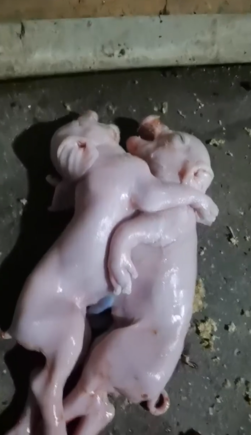 In the natural world, the birth of a new life is always considered a joy. However, sometimes that joy is accompanied by moments of unease. The image of two pigs mechanically joined together, their legs intertwined, and their faces distorted is no longer a strange sight in recent years.