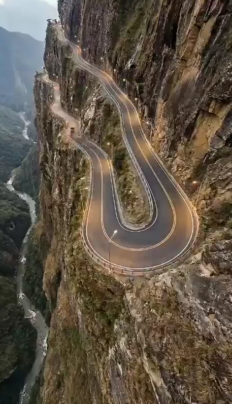 They decided to undertake the impossible: to build a winding road right on the face of the limestone cliff.