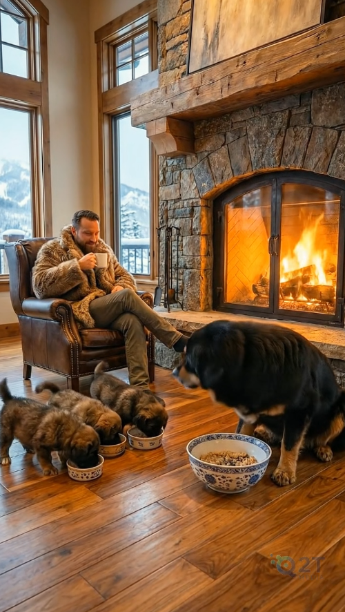 The entire Mastiff family, from the exhausted mother to the trembling puppies, all turned around simultaneously. In the mother’s eyes, dimmed by the cold, a faint but powerful glimmer of hope flickered. It was a desperate plea for help.