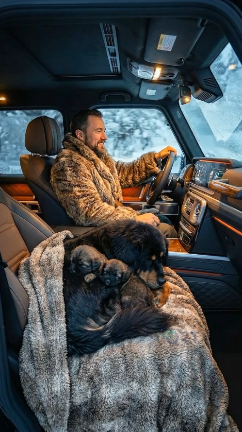 On the drive home, the man focused on the road through the snow while constantly glancing in the rearview mirror. In the back seat, the mother dog lay silently, keeping her puppies warm. A mix of emotions welled up in the man’s heart. He was overjoyed to have rescued this little family from the brink of death, but also worried about whether their health would be significantly affected after enduring such a long period of cold.